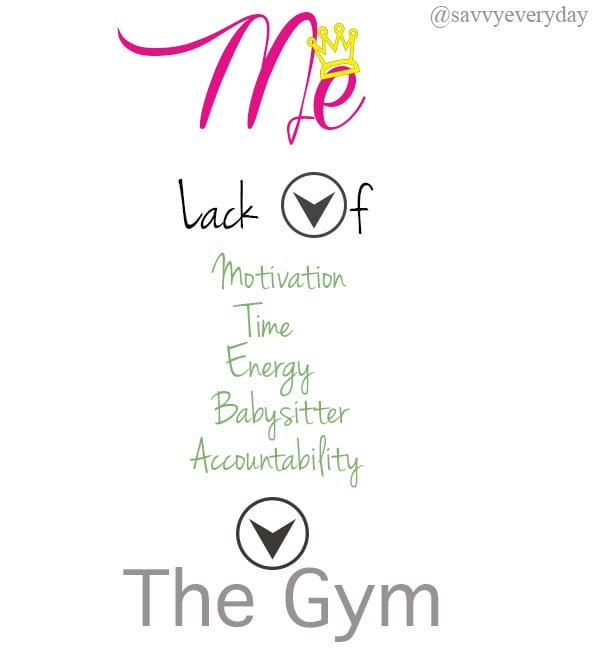 A friend of mine who I equate to a Barbie doll had a little boy about a year ago and looks amazing. A-maz-ing! I’m not jealous of her gorgeous body though, I’m envious that she has the dedication and will power to make it to the gym and invest in her health. I’m so bad at working out that I’ve created a graphic showing all the things that are keeping me from working out, which I’ll call “The Gym.”